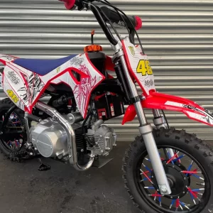 This dirt bike is for recreational use and should not be used on public highways. Dirt bikes are not legal on public roads and can only be used on private land with the permission of the land owner. This product is not a child’s toy and falls outside of BS7407:1991 as it is not intended for use by children, due to its design and speed, and is for off-road use only. Also the build quality and performance means it is not covered by the Machinery (Safety) Regulations 2008 or BS EN71. All powered vehicles are potentially dangerous and their use could involve the risk of injury or death and they must be used in a responsible manner. All nuts and bolts, tyre pressures and steering should be checked by a competent adult before every use. Accident damage should be attended to immediately and damaged parts replaced. Helmets and suitable protective safety equipment should be used at all times.
